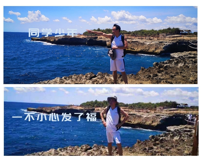 午餐過后,我們乘坐島上的“‘藍’博基尼”(頂棚是藍色,故而得名)前往海島另一側的著名打卡景點“惡魔的眼淚”,山路異常狹窄,幾十輛“‘藍’博基尼”幾乎全部載滿了前來旅行的中國人,“男神”不禁感慨道:“像拉豬一樣把一車一車中國人拉往景點。”在那個中國人全世界打卡而不是度假的年代,又一次感受到了中國人占領全世界景點的盛況。
