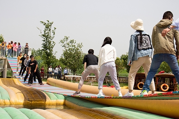 一頓豐盛的餐點過后,在經過小憩過后,公司組織了團體性的小活動,為大家消消食,“配合帶球跑”“蒙眼喂香蕉”“搖擺橋”,眾人都是玩的不亦樂乎。
