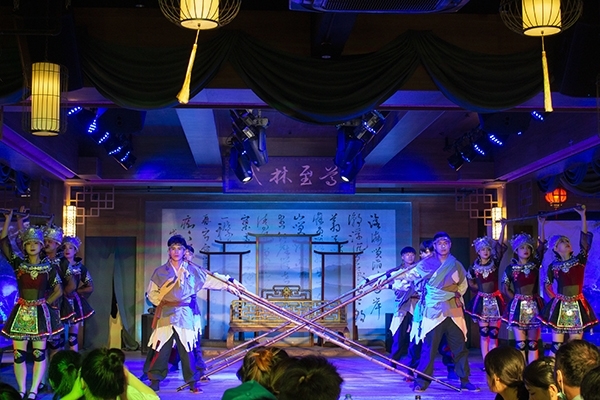 “北冥有魚,其名為鯤。鯤之大,不知其幾千里也......”隨著莊周的《逍遙游》緩緩誦來,演出開始了,演出者著華服,為到場嘉賓奉獻了一場精彩的演出。