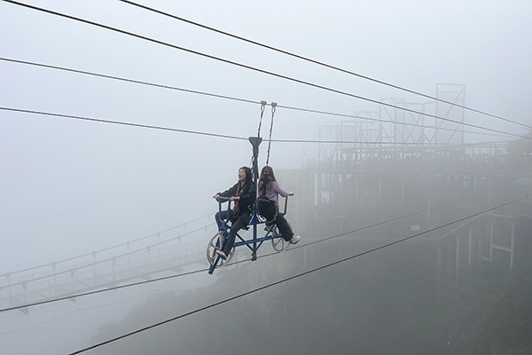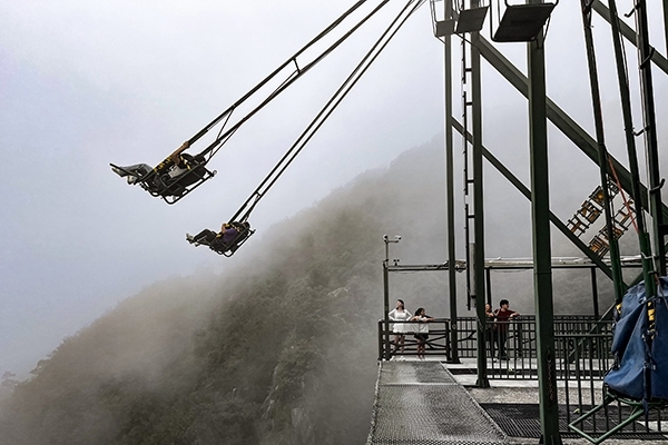 因?yàn)樵谠贫耍性朴徐F實(shí)在太正常了,讓我拍出來的照片,都帶了層層的天然濾鏡。小伙伴們都去找項(xiàng)目玩上了:在“‘懸崖秋千’,驚聲尖叫”、“‘水晶廊橋’,一步一趨”、“‘凌空飛步’,顫抖蹦跳”、“‘云中漫道’,站立云端”、“空中自行車”、“彩虹滑草”、“軌道滑草”、“射箭”、“射擊”、“卡丁車”等等多項(xiàng)活動(dòng),讓人流連忘返。我們一起來看。