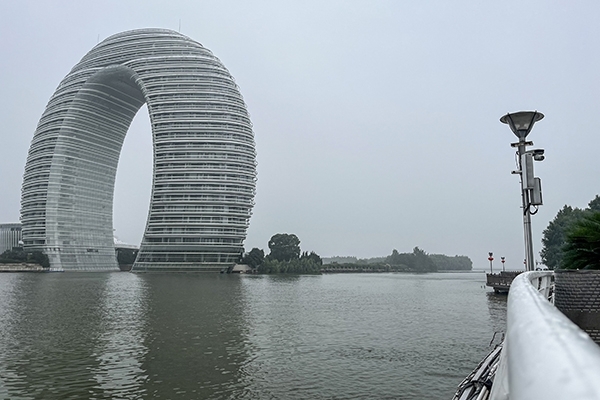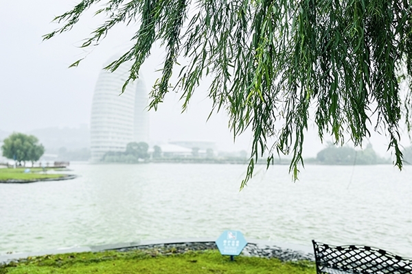 次日,來到月亮廣場(chǎng)轉(zhuǎn)一轉(zhuǎn),有道是上車睡覺,下車拍照,車上補(bǔ)的是前日的疲勞,打卡拍的是湖邊的錦繡風(fēng)光,卻不知有沒有看到那著名的“馬桶圈”,月亮酒店。