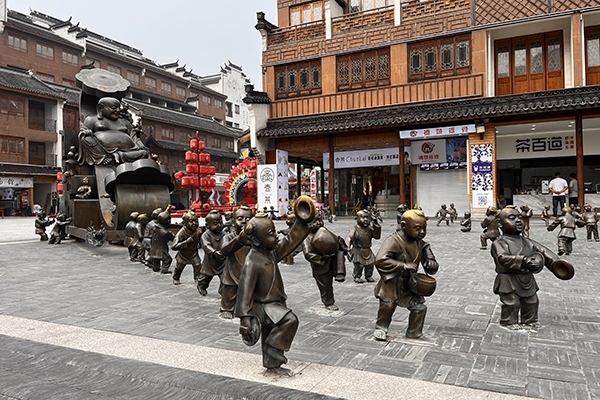 臨到傍晚,結(jié)束了安吉的行程后,我們乘坐大巴前往下個(gè)目的地,位于湖州長(zhǎng)興縣東魚坊的宿舍。這里離次日龍之夢(mèng)古鎮(zhèn)不遠(yuǎn),晚上也可乘機(jī)逛逛東魚坊文化歷史街區(qū),燈光下,熱鬧非凡。