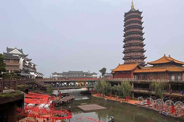 龍之夢(mèng)太湖古鎮(zhèn),使咱們這趟旅行的最后行程,這座古鎮(zhèn)2018年平地而起,建造不菲,這里古色古香,海量的飯店,各色江南小吃,湖州老字號(hào)。白日里還是差點(diǎn)顏色,比網(wǎng)圖的夜景相比,相形見絀。很可惜,為避免中秋&國(guó)慶的大堵車,我們也只能止步于此,踏上歸途。