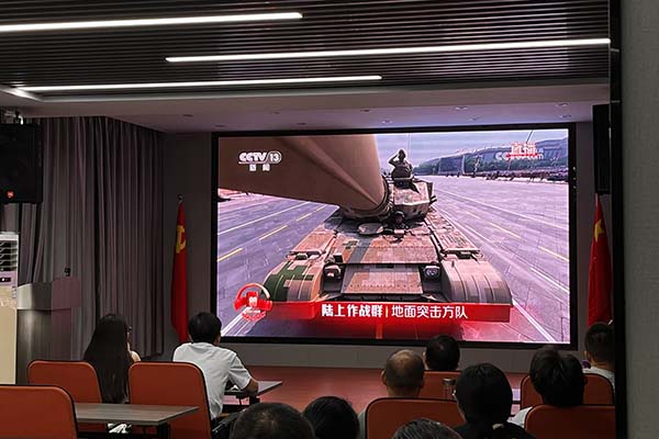 上午9時,閱兵式正式開始。當嘹亮的國歌聲響起,全體員工自發起立,齊聲高唱,莊嚴的氛圍感染著現場每一個人。分列式上,中國人民解放軍將士們步伐鏗鏘、意氣風發;新型武器裝備依次亮相,展現出現代化國防力量的強大實力;一個個震撼人心的畫面,讓在場員工心潮澎湃,民族自豪感油然而生。閱兵儀式令人心潮澎湃,不僅增強了民族自豪感,也更深刻體會到和平的珍貴與奮斗的意義。