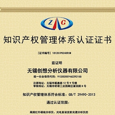 創想儀器GLMY順利通過本年次的知識產權管理體系認證,并獲證書。 無錫創想分析儀器有限公司是一家具有自主知...